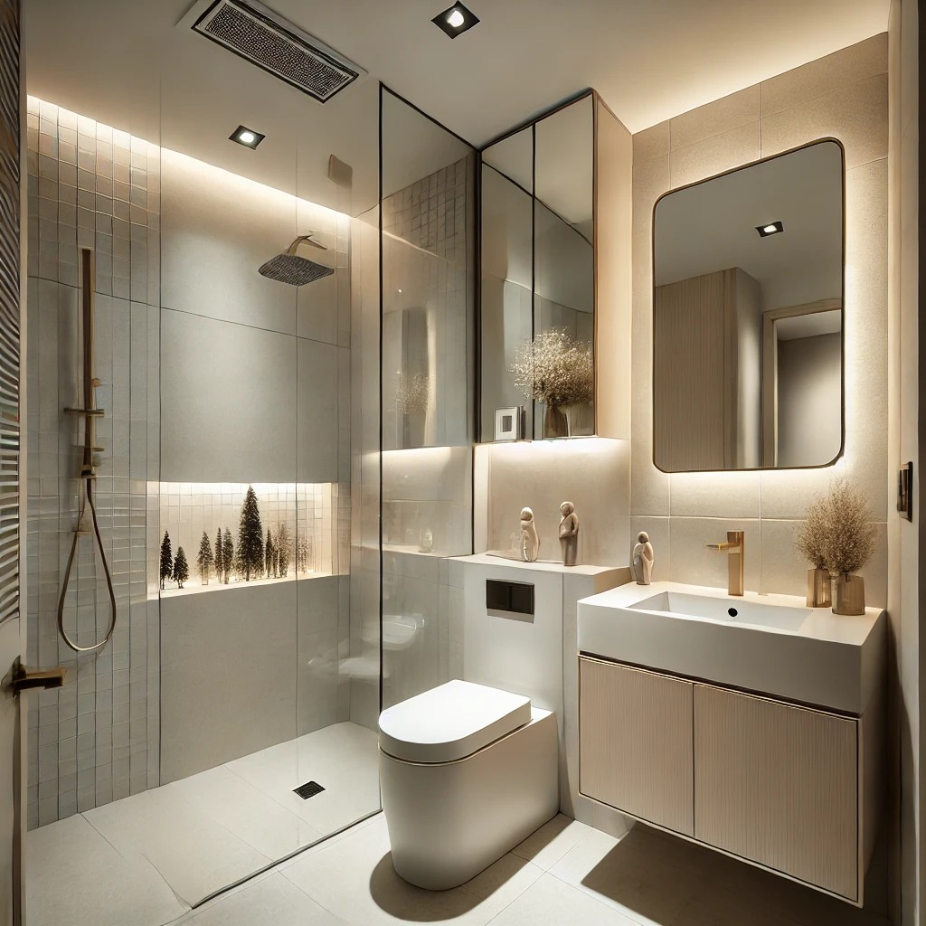 Glass Elements: A frameless glass shower enclosure enhances openness and makes the space appear larger.